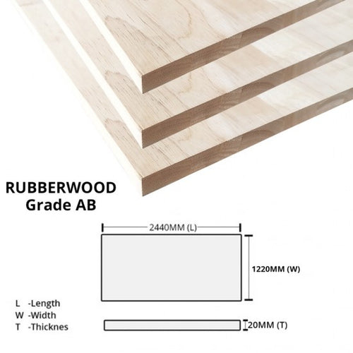 Rubberwood Grade AB 20MM (T) x 1220MM (W) x 2440MM (L) Finger Jointed Laminated Board